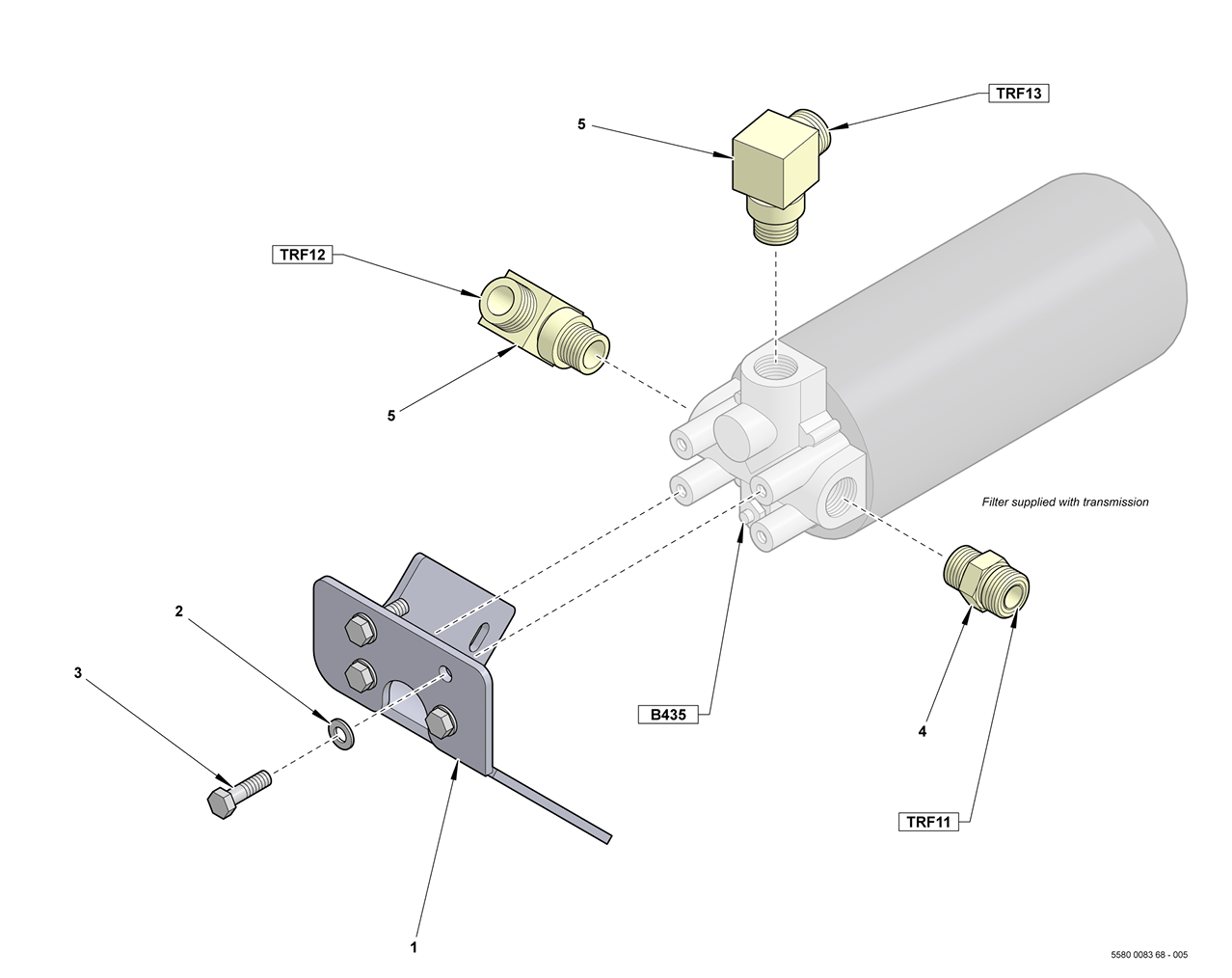 零件號 名稱 數(shù)量 備注 再制造件號 L FILTER SET - TRANSMISSION FILTER SET TRANSMISSION 項目 COMPLETE _ASSEMBLY FILTER SET 1 TRANSMISSION FILTER SET 1 2 5580011002 0301234400 ATTACHMENT PLAIN WASHER 1 GRAY 4 3 4 0147136403 0570702520 SCREW, HEX HEAD NIPPLE 4 10,5 / 20 X 2 -HB 200 FZB M 10 X 35 - 8.8 FZB 1 5 0570704118 ELBOW NIPPLE 2 B1 18-20 UN 1 3/16-12 B1 18 20 UN 30,16 1 3/16
