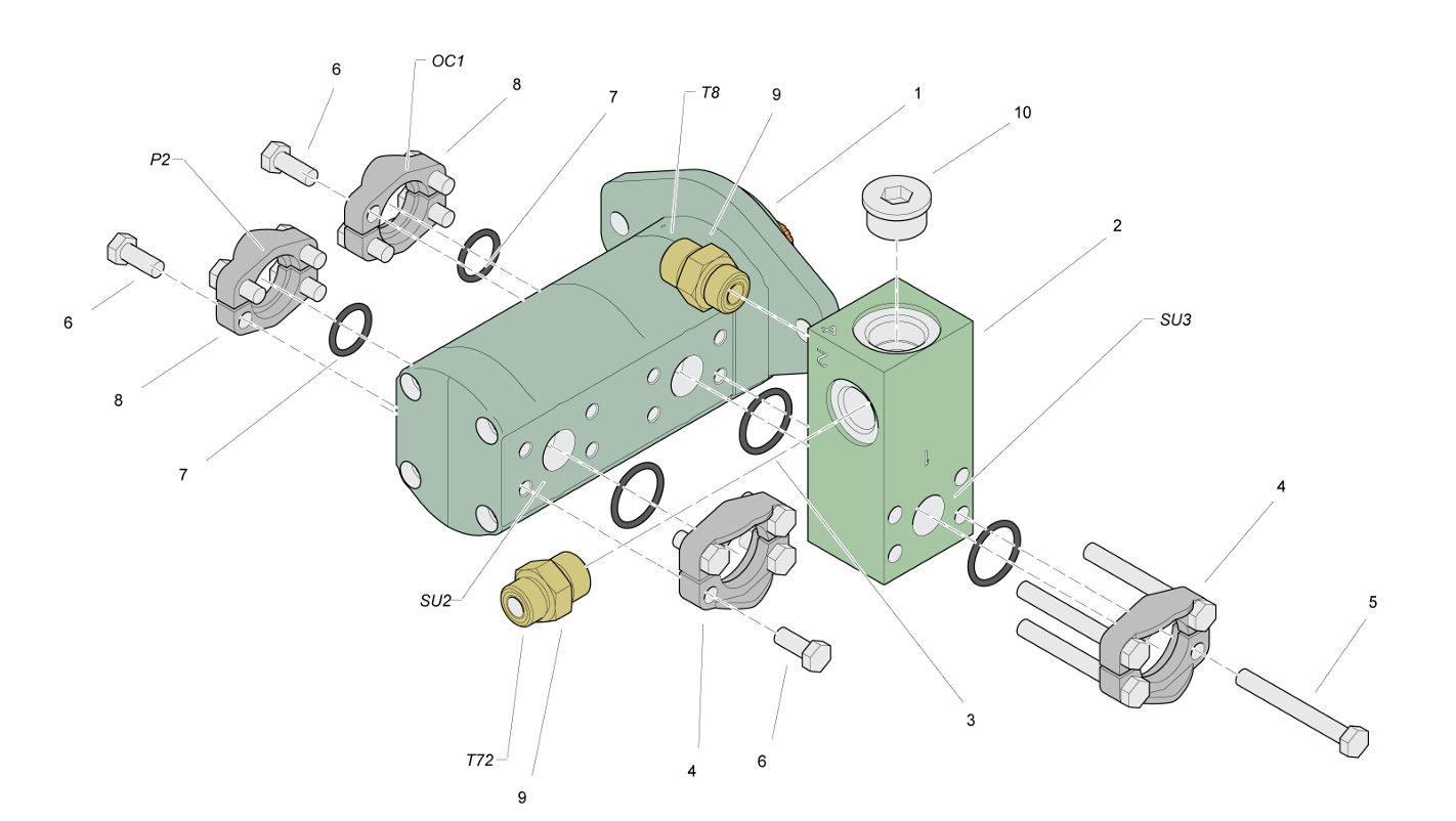 COMPLETE _ASSEMBLY PUMP SET 1 DOUBLE GEAR PUMP SET 1 2 5580007524 5580007525 GEAR PUMP VALVE BLOCK 1 DOUBLE GEAR PUMP 26CC+21C 1 3 4 5533272700 0638052100 O-RING FLANGE HALF 3 4 J-BLOCK O-RING (VITON 16-SPFL) 5 6 0147137403 0147136203 SCREW, HEX HEAD SCREW, HEX HEAD 25 X 45,24 SAE 1 PR.345ZINC PLATED, 25 X 45,24 SAE 1 PR.345 4 M 10 X 85 - 8.8 FZB 12 7 8 5533272400 0638051500 O-RING FLANGE HALF 2 M 10 X 25 - 8.8 FZB O-RING (VITON 12-SPFL) 4 9 10 0570702512 5500788300 NIPPLE PLUG 2 19 X 38,89 SAE 3/4 PR.345 B1 14-16 UNS 1 -14 1 PLUG-INV (O-RING)